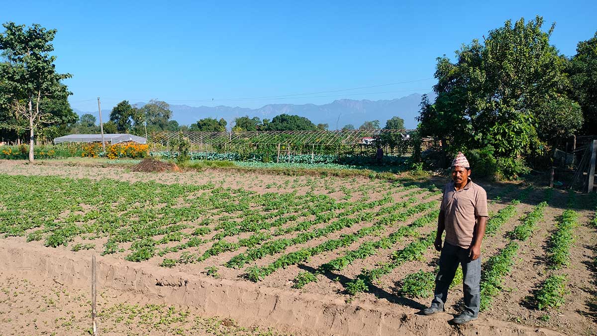 कञ्चनपुर/ शुक्लाफाँटा नगरपालिका-८ नौखरीका व्यवसायिक तरकारीखेतीमा संलग्न किसान महादेव चौधरीले यस वर्ष पहिलोपटक टिपिएस (ट्रयु पोटेटो सिडस) विधिबाट आलुखेती गर्नुभएको छ । चौधरीले आलुको बोटमा फलेको वास्तविक बियाँ प्रयोग गरी नर्सरीमा बिरुवा उत्पादन गरेपछि खेतमा रोप्नुभएको हो ।