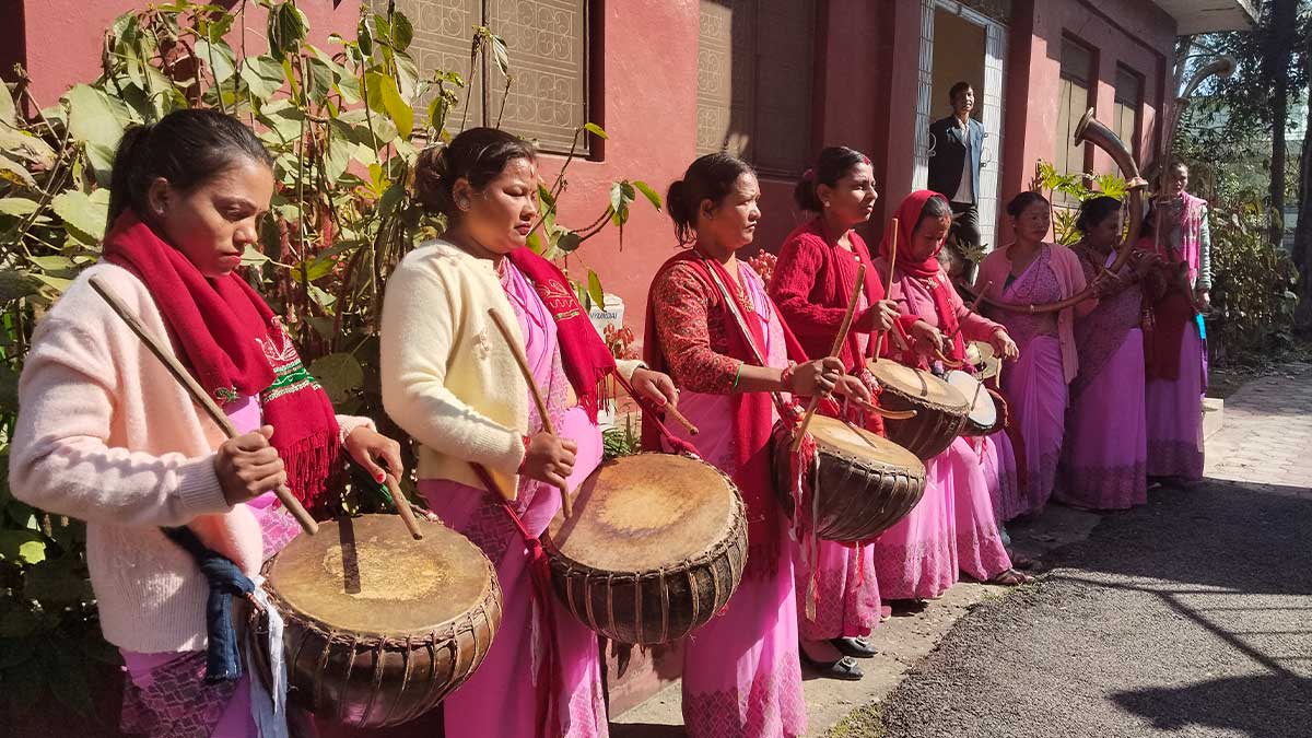 ‘महिला पनि सीप सिकेर अगाडि बढ्नुपर्छ’, उहाँले भन्नुभयो, ‘हामी बाजा बजाएर अगाडि बढेका छौँ ।’ उहाँ आजभोलि नौमती बाजाको समूहमा बाजा बजाउँदै जिल्लाका विभिन्न ठाउँसहित जिल्लाबाहिर पनि मागअनुसार पुग्ने गर्नुभएको छ ।